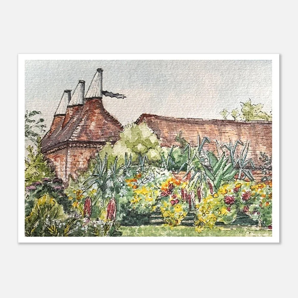 Great Dixter is a magical, romantic, arts and crafts style home and gardens. I painted this piece with watercolour from an image I took while exploring the gardens. I aimed to capture the layers of intricate planting, and how walking around feels like you have fallen into a whimsical story.